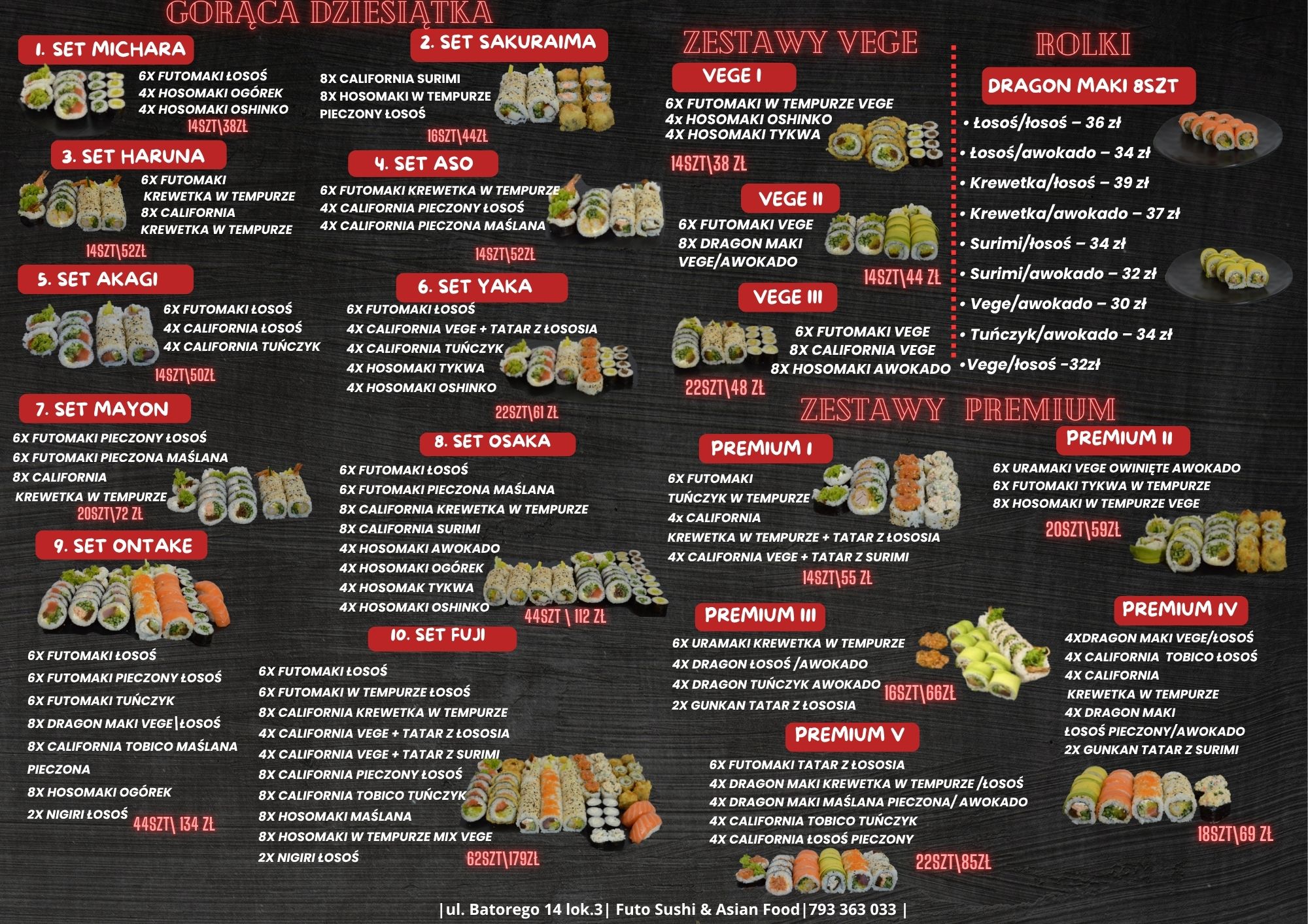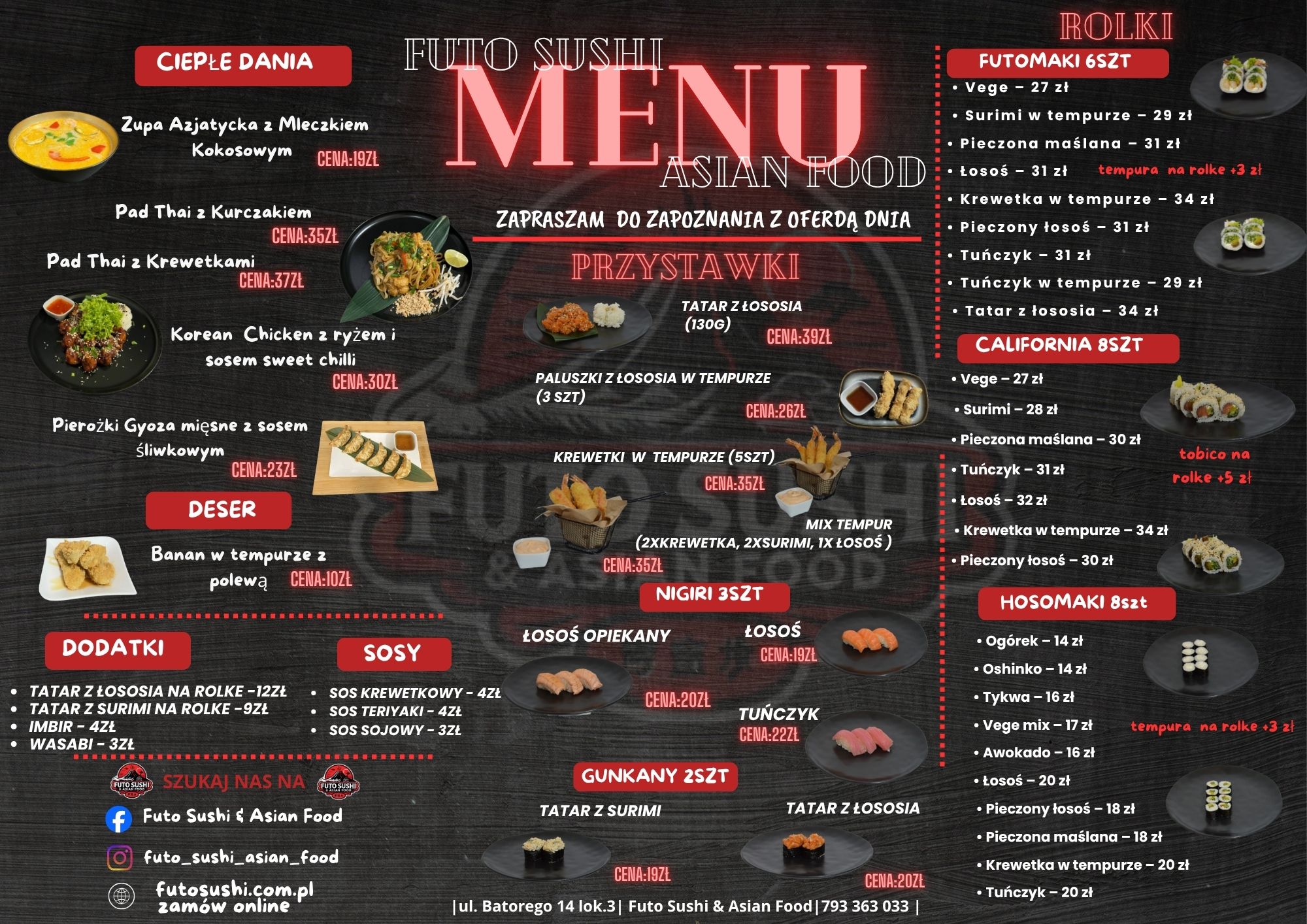Restauracja FUTO SUSHI znajduje się przy ulicy Batorego 14 w Białej Podlaskiej. Została stworzona z myślą o miłośnikach kultury japońskiej oraz osób, które jeszcze nie miały przyjemności skosztowania tej kuchni.